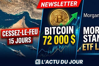 Cessez-le-feu de 15 jours à Ormuz, le Bitcoin bondit à 72k et Morgan Stanley lance son ETF !