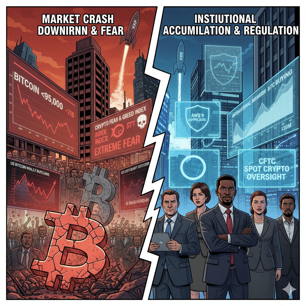 Une journée difficile pour Bitcoin, qui atteint un nouveau creux de six mois ! La "Peur Extrême" s'installe, mais les institutions continuent de se positionner massivement. Pendant ce temps, la régulation avance et de nouvelles innovations émergent.