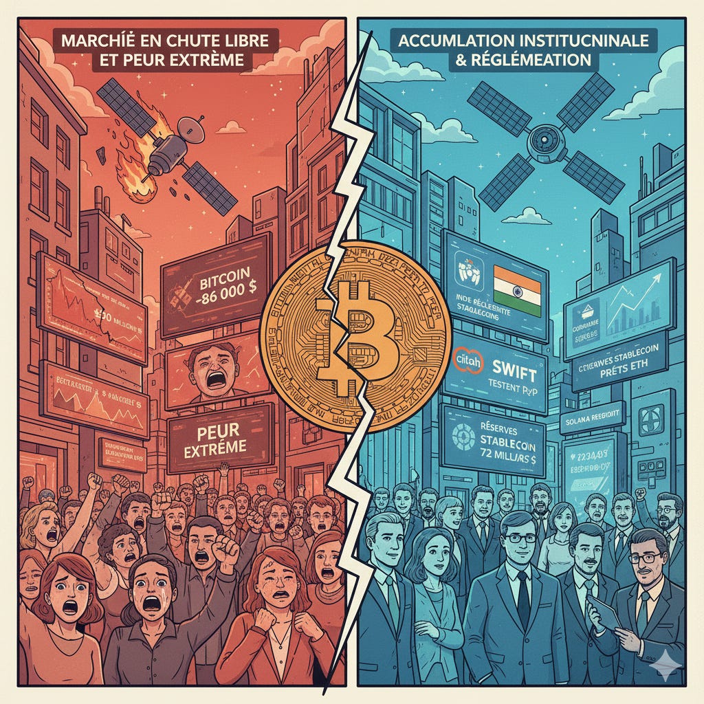 Bitcoin sous les 86 000 $, 1 000 milliards de dollars effacés, et l'Inde réglemente les Stablecoins !