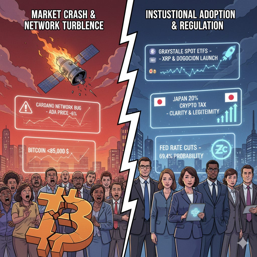 Le marché crypto est en pleine effervescence ! Le réseau Cardano a subi une perturbation majeure, mais de nouveaux ETF spot XRP et DOGE sont lancés. Pendant ce temps, Bitcoin traverse sa plus longue série de pertes, et la régulation asiatique se durcit.