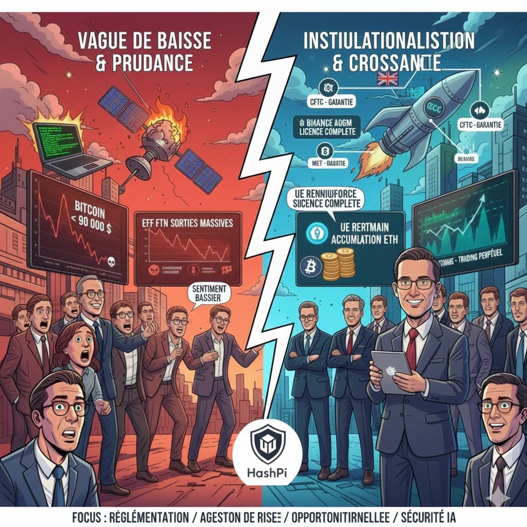 Le paysage crypto actuel présente un mélange de progrès réglementaires significatifs et de prudence sur le marché. Les agences réglementaires aux États-Unis, au Royaume-Uni, en Inde et aux Émirats arabes unis font des avancées pour clarifier les cadres, bien que les blocages législatifs américains persistent. Le soutien institutionnel reste solide, notamment avec l’accumulation de bitcoin et les innovations telles que les produits de crédit adossés au bitcoin qui gagnent en élan.