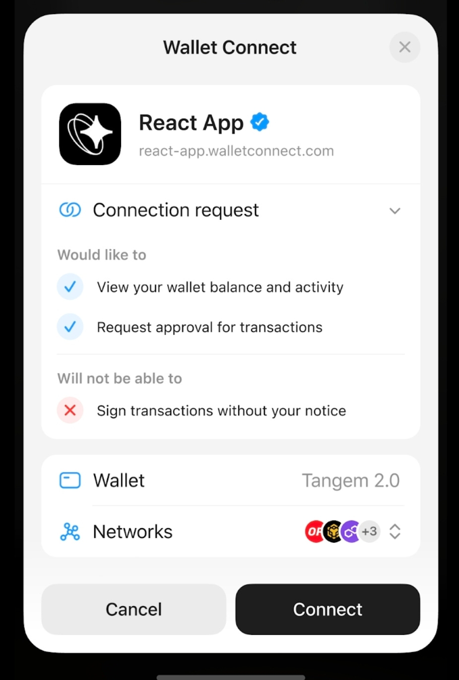 Le nouveau WalletConnect a été repensé pour être plus simple, plus propre et plus sécurisé. Vous pourrez vous connecter à une dApp sur plusieurs réseaux au cours d'une même session, ce qui facilite grandement l'exploration de l'écosystème Web3, que ce soit sur Solana, Ethereum ou d'autres réseaux.